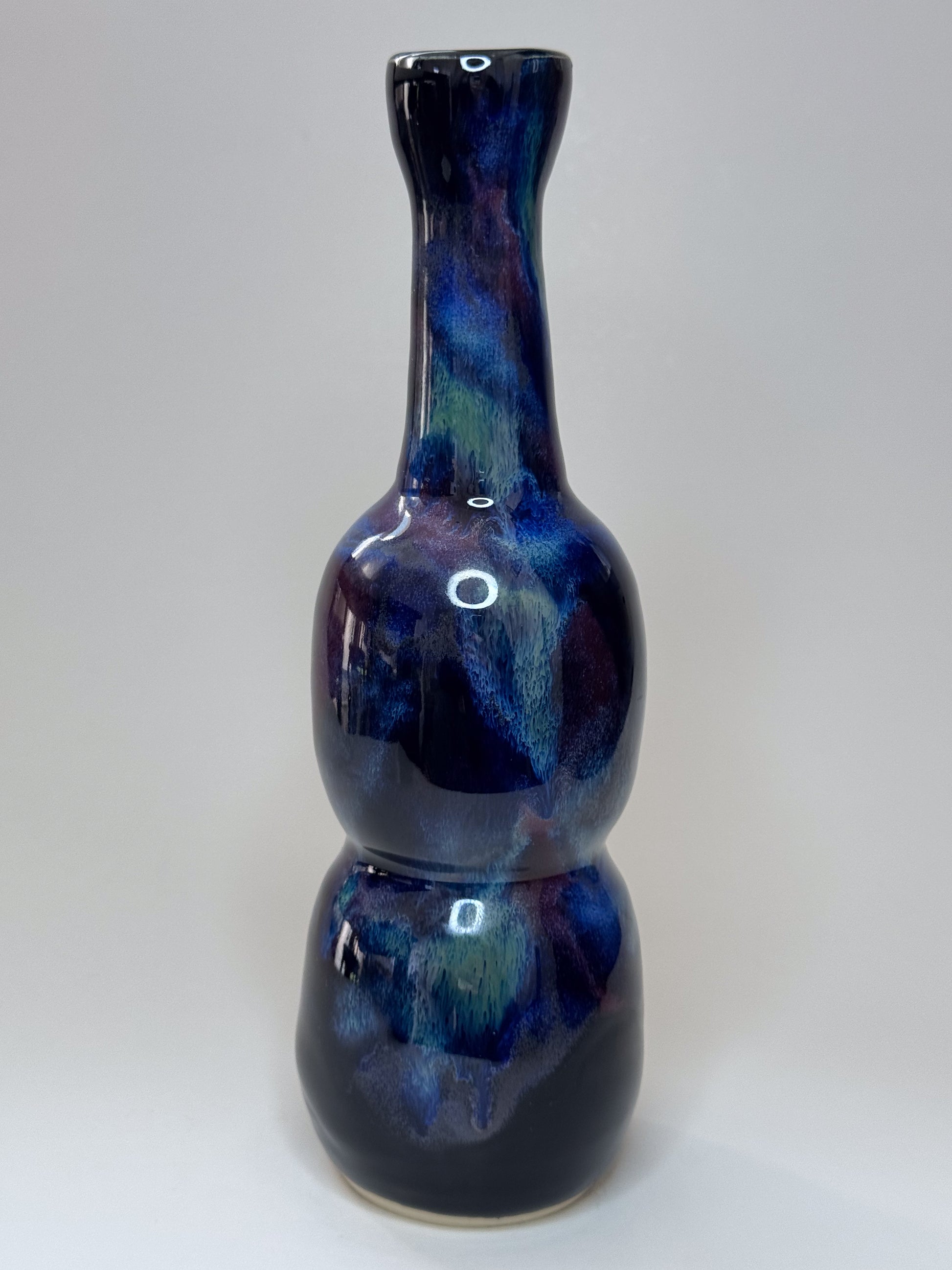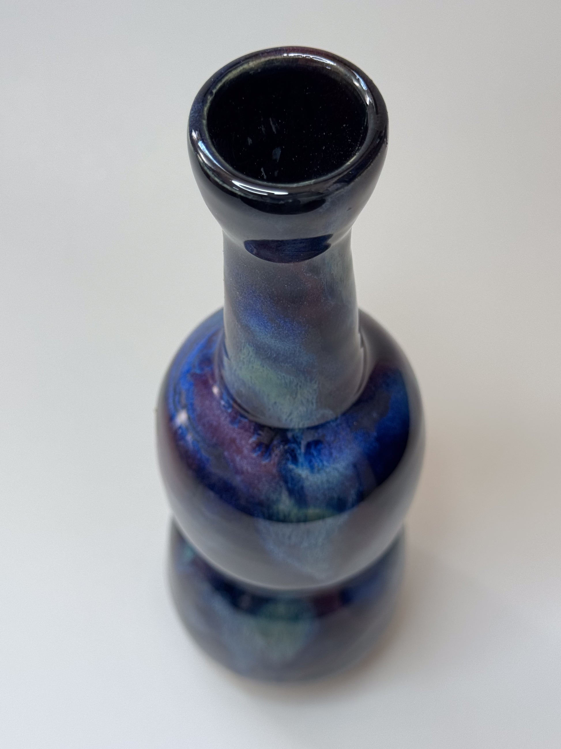 Add a touch of artistry to your home with this one-of-a-kind handcrafted ceramic bottle.