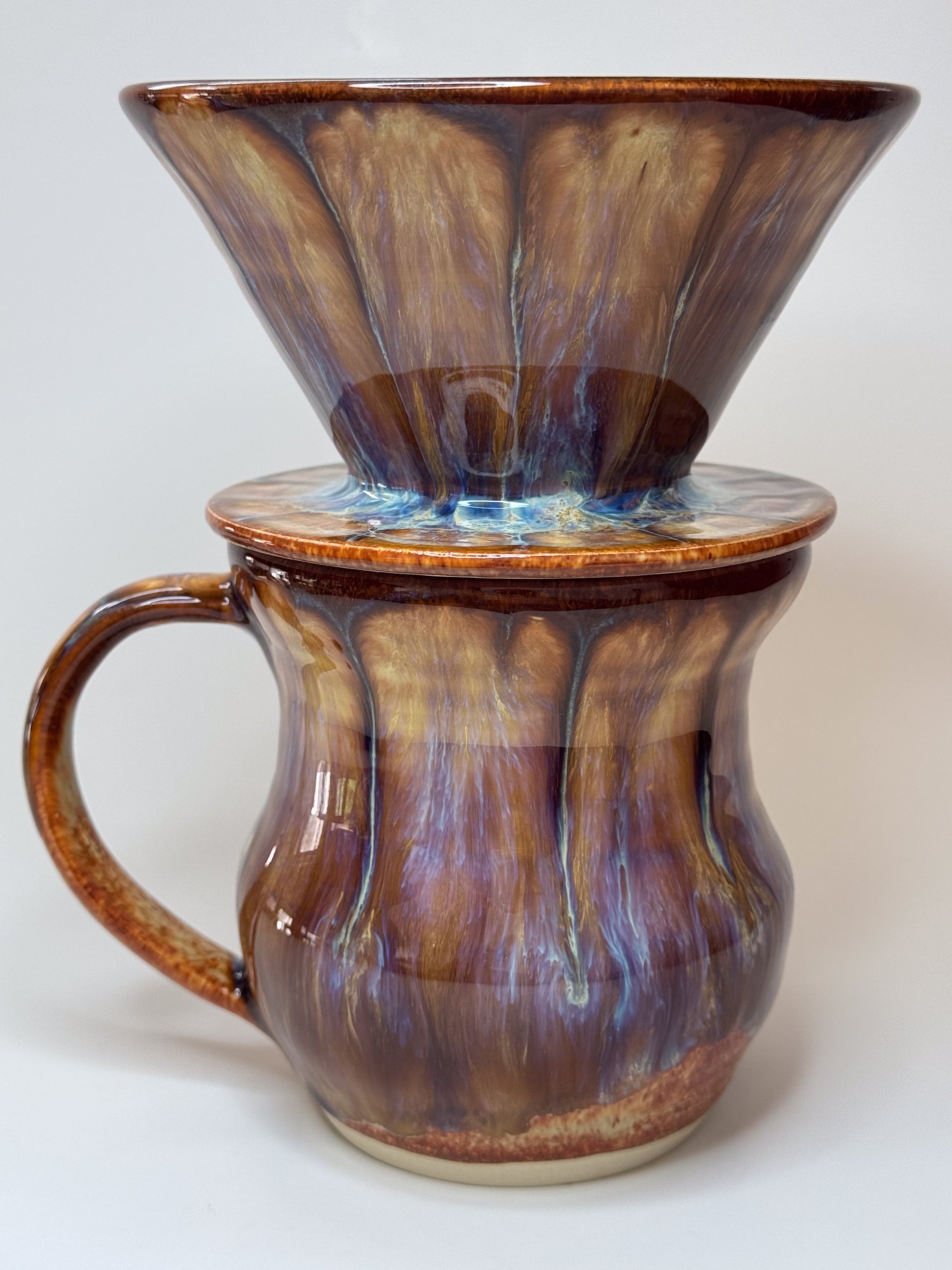 This pour-over set is a testament to craftsmanship and creativity, ideal for those who appreciate unique and functional art pieces. Please note that colors may appear slightly different in person than they do in the images.