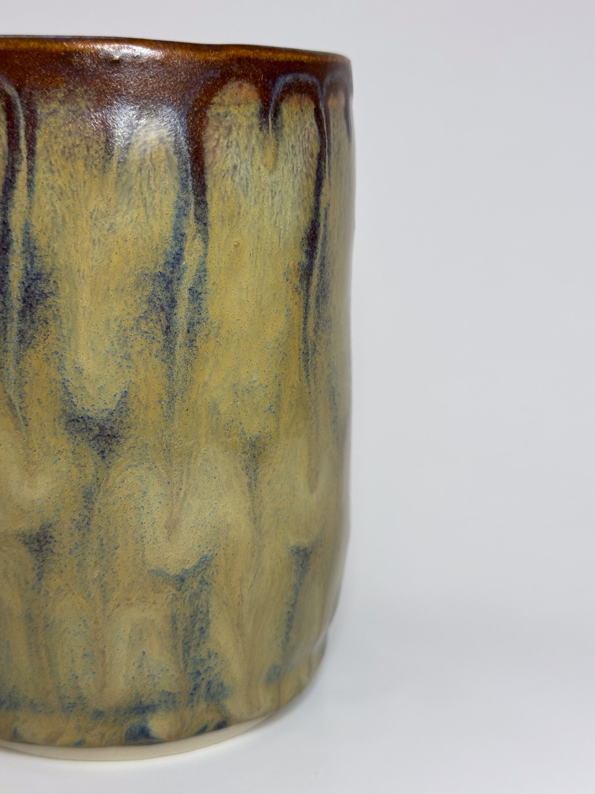 - Finish: Semi-glossy green and brown multicolor glaze.