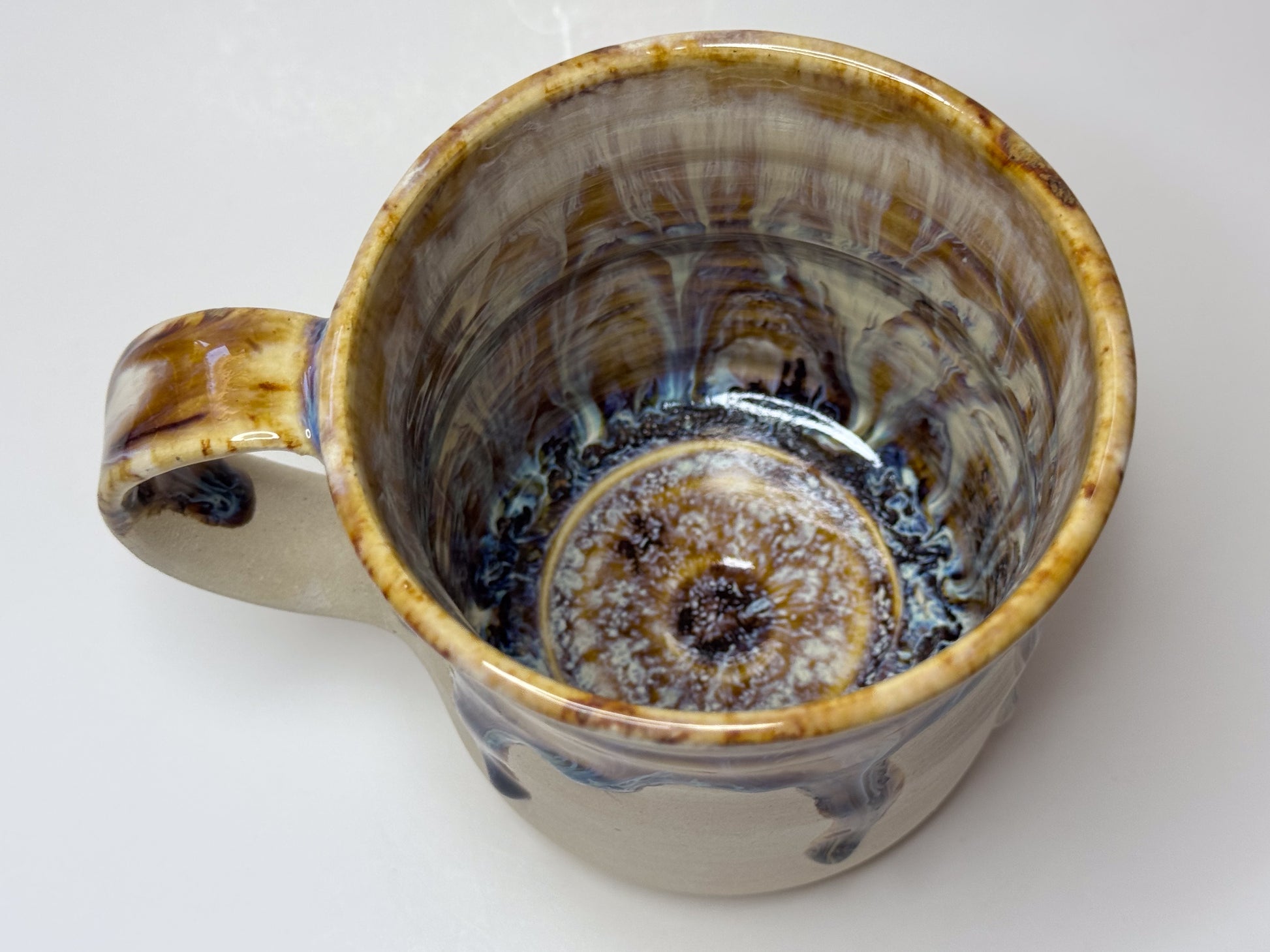 This mug is a testament to craftsmanship and creativity, ideal for those who appreciate unique and functional art pieces. Please note that colors may appear slightly different in person than they do in the images.