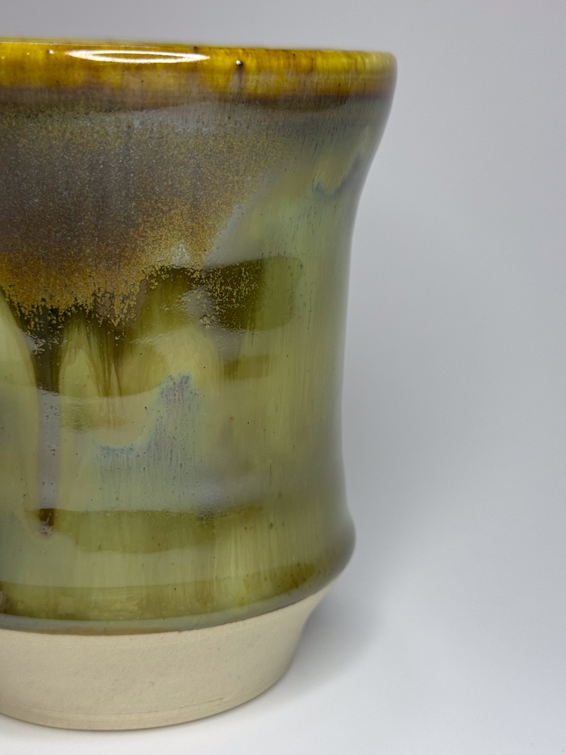 - Finish: Ultra-glossy and metallic green multicolor glaze.
