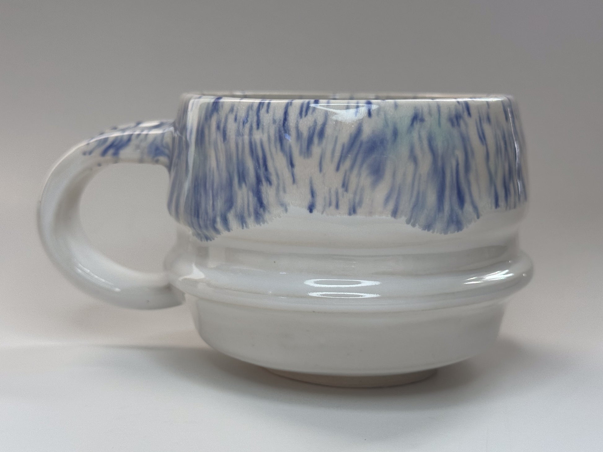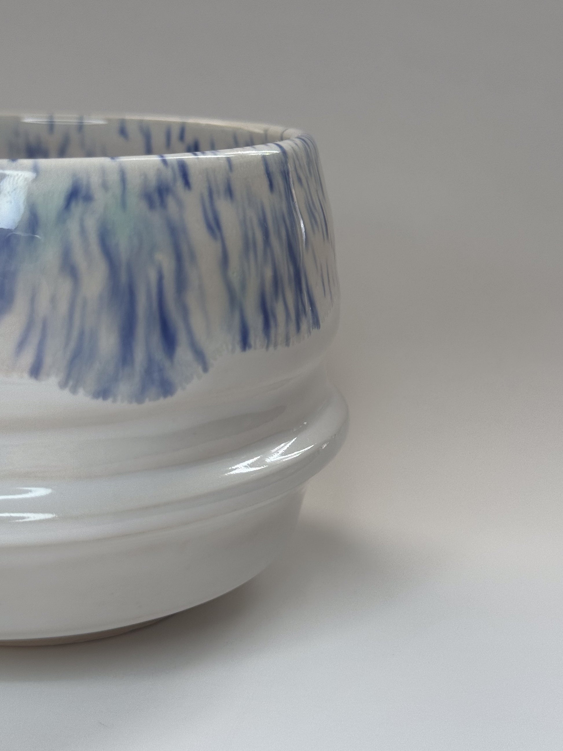 - Finish: Glossy multicolor white and blue glaze.