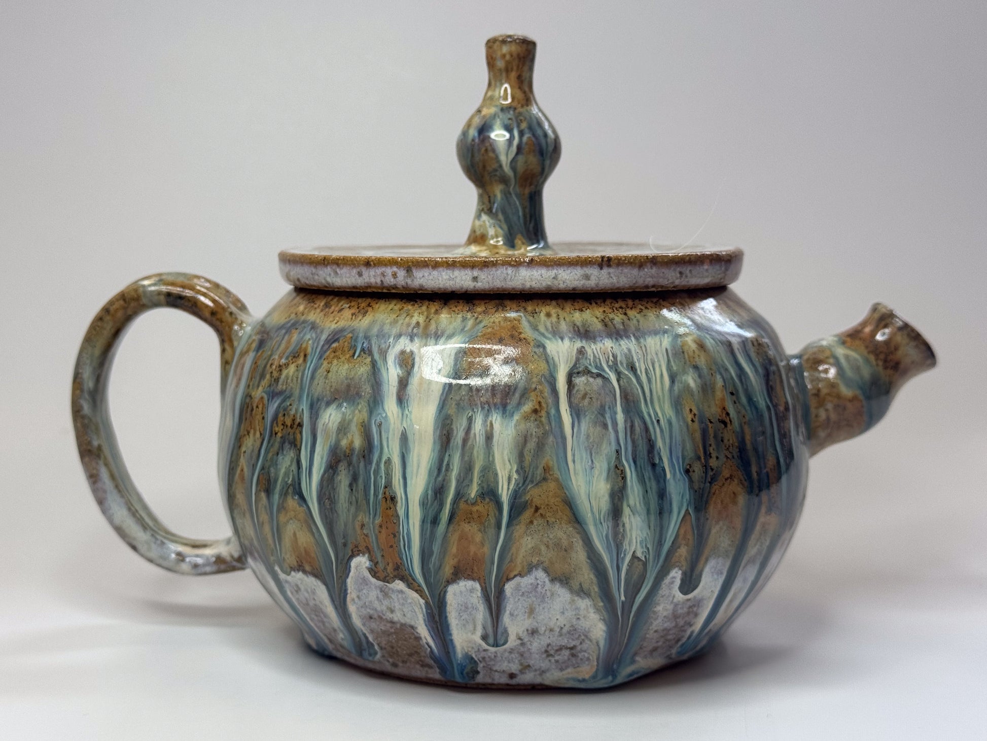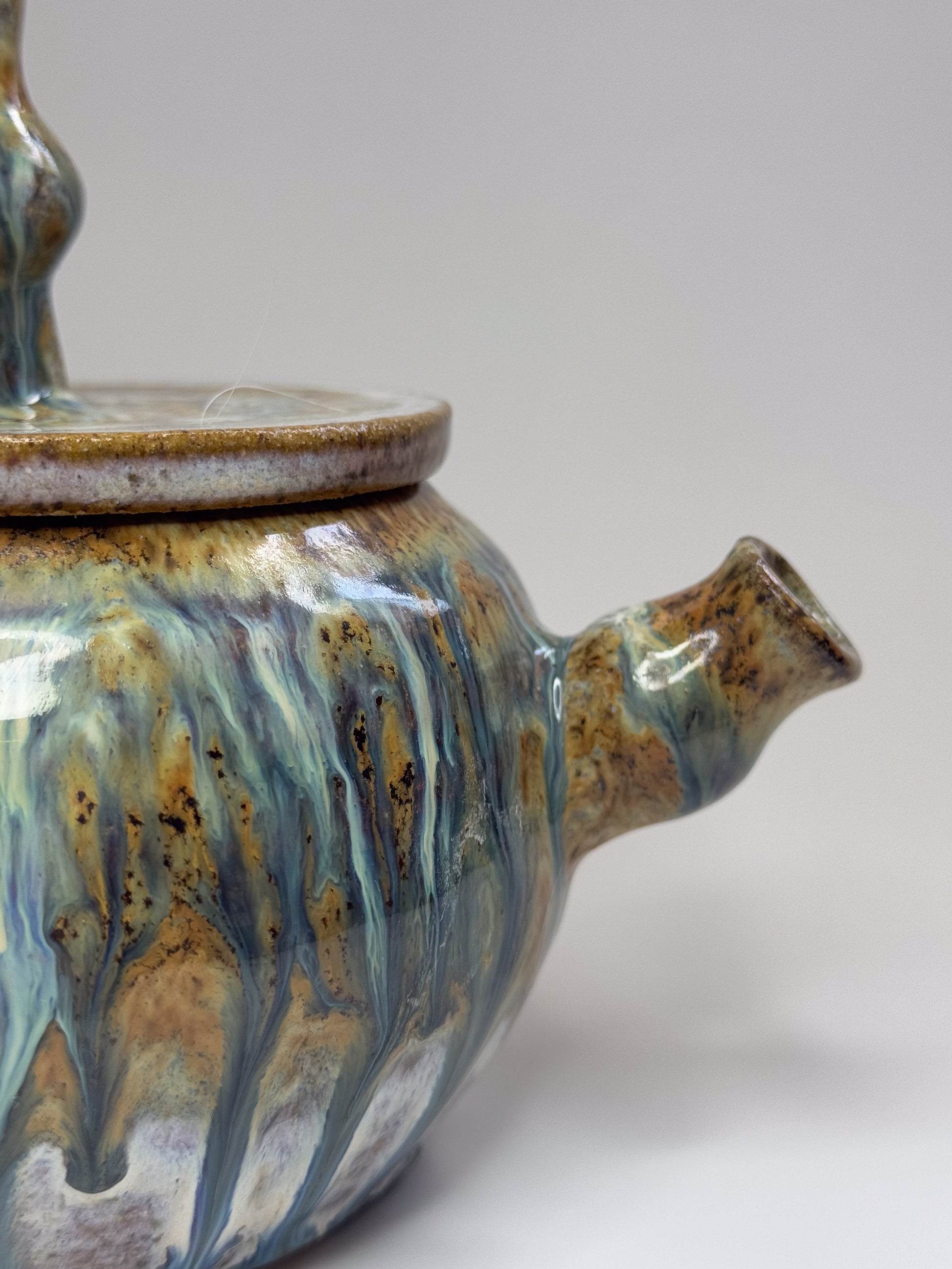 This teapot is a testament to craftsmanship and creativity, ideal for those who appreciate unique and functional art pieces. Please note that colors may appear slightly different in person than they do in the images.